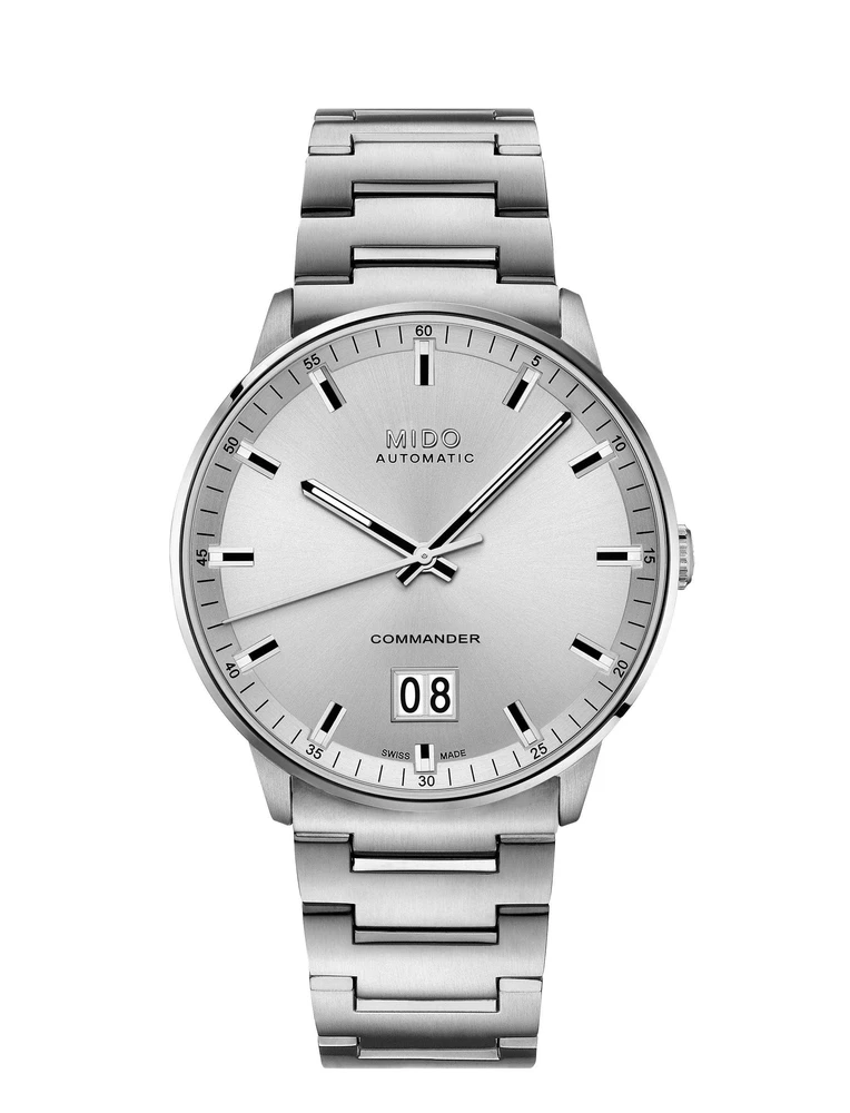O relógio suíço Commander Big Date celebrou o 100º aniversário da marca em 2018. Sua ampla abertura para a data às 6 horas oferece uma legibilidade incomparável. O mostrador com acabamento escovado em padrão raios de sol é extremamente puro e protegido por uma elegante caixa redonda em aço inoxidável escovado, realçada por um aro polido. Esta peça antológica e icônica é equipada com o Calibre 80, um movimento automático que oferece até 80 horas de reserva de marcha.