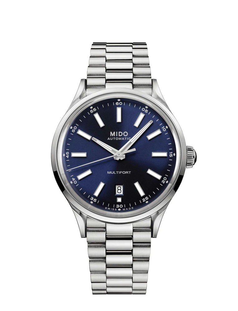 Uma fusão refinada entre herança e inovação, a coleção Multifort Patrimony Powerwind se inspira no icônico Powerwind de 1954 da MIDO, ao mesmo tempo em que adota um espírito jovem e renovado. Sua caixa polida e escovada, mostrador raiado abaulado com índices retangulares luminescentes e vidro em safira com efeito glassbox evocam uma estética vintage marcante. A pulseira metálica esportiva adiciona um toque moderno, oferecendo uma elegância versátil. Movida por um confiável movimento automático, esta coleção é um tributo ao legado de precisão da MIDO, combinando design atemporal com desempenho contemporâneo.
