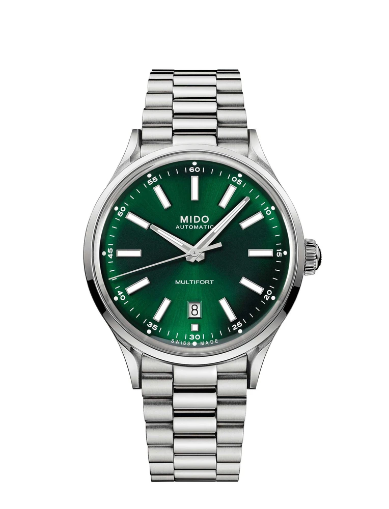 Uma fusão refinada entre herança e inovação, a coleção Multifort Patrimony Powerwind se inspira no icônico Powerwind de 1954 da MIDO, ao mesmo tempo em que adota um espírito jovem e renovado. Sua caixa polida e escovada, mostrador raiado abaulado com índices retangulares luminescentes e vidro em safira com efeito glassbox evocam uma estética vintage marcante. A pulseira metálica esportiva adiciona um toque moderno, oferecendo uma elegância versátil. Movida por um confiável movimento automático, esta coleção é um tributo ao legado de precisão da MIDO, combinando design atemporal com desempenho contemporâneo.