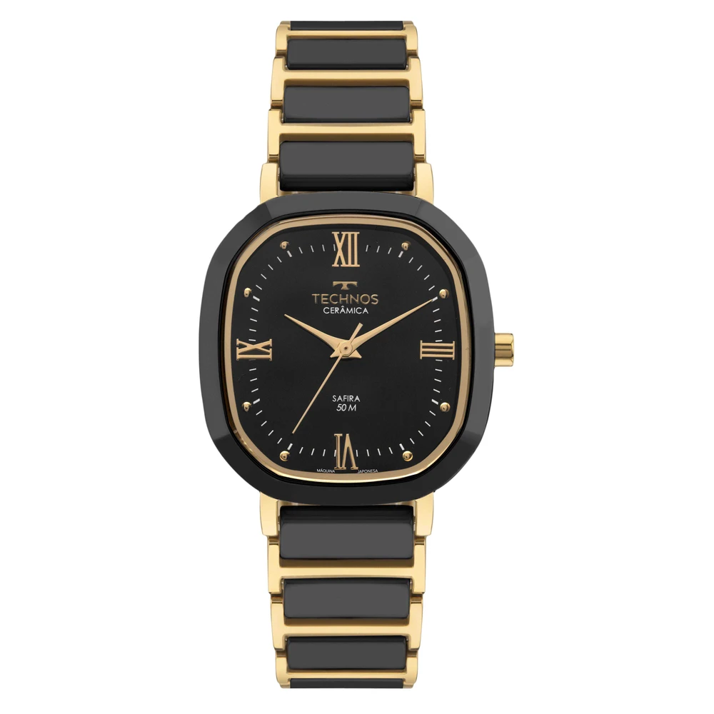 A linha Technos Cerâmica ganha novo modelo que exala sofisticação em cada detalhe. Com aro externo facetado em cerâmica e lente de safira, o relógio une elegância e resistência em um design atemporal. A lente de safira ainda entrega alta resistência a riscos e arranhões. O mostrador com assinatura de linha conta com a presença da numeração romana, que reforça o estilo clássico e elegante. A pulseira em elos sólidos de aço com aplicação de cerâmica complementa o visual refinado da coleção. Além disso, o relógio apresenta resistência à água de 50 metros e tamanho de caixa de 30mm.