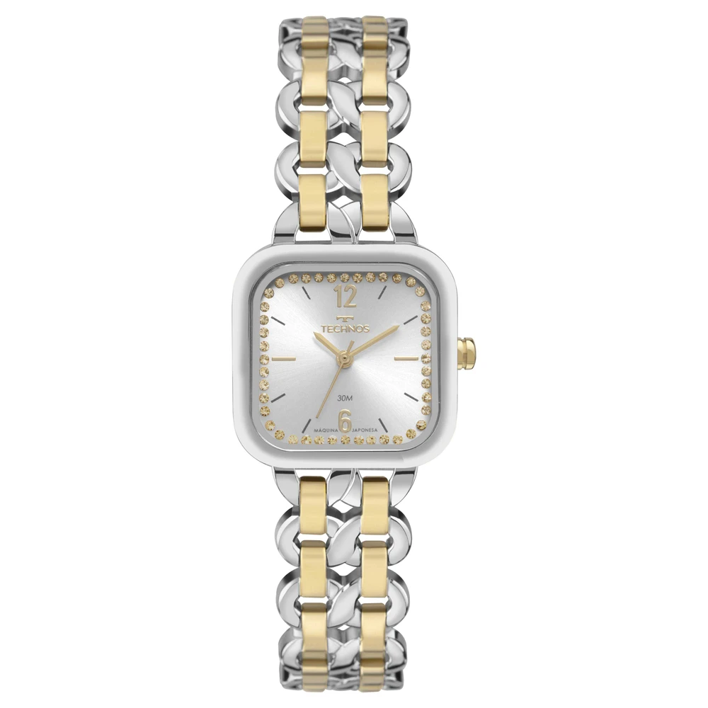 Relógio Technos Elos com a inovadora pulseira de elos sólidos duplos. Com design moderno, seu mostrador apresenta pedras aplicadas por todo o aro interno e numeração arábica nas posições de 6 e 12 horas. Produto 100% em aço inoxidável, com máquina quartz Japonesa Miyota e resistência à água de 30 metros.