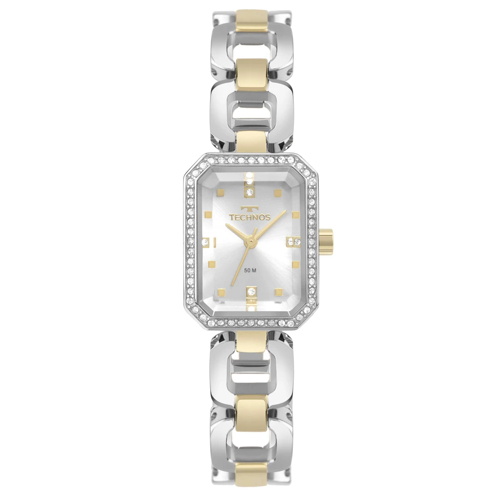 O novo modelo da linha Elos oferece a diferenciada presença do vidro facetado e aplicação de pedras por todo o aro externo. Ele apresenta a clássica pulseira de elos sólidos com fecho de joia, e um mostrador elegante, que também conta com a aplicação de pedras delicadas em todos os marcadores de hora. Produto 100% em aço inoxidável, com máquina quartz Japonesa Miyota e resistência à água de 50 metros.