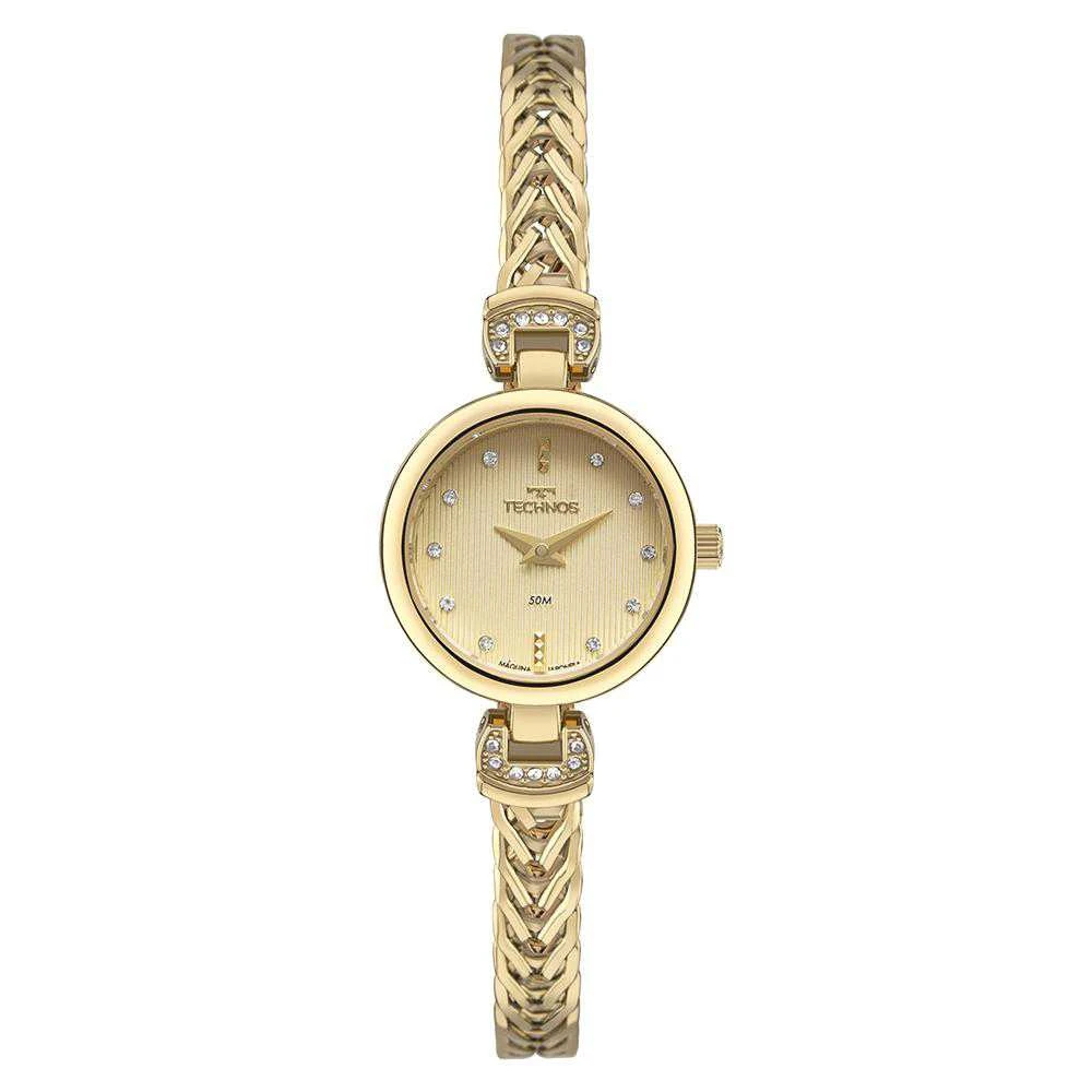 Relógio Technos Mini com design moderno e sofisticado. Ele apresenta uma caixa pequena e delicada, mostrador texturizado e aplicação de pedras nos marcadores de hora. Sua pulseira diferenciada, feita em aço inoxidável sólido, também apresenta aplicação de pedras em seu terminal e fecho de joia. Produto 100% em aço inoxidável, com máquina quartz Japonesa Miyota e resistência à água de 50 metros.