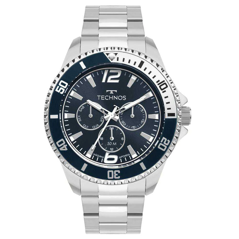 A linha Racer Premium traz lançamentos de design esportivo com presença marcante e mostrador de fácil leitura, com numeração arábica nas posições de 6/12 horas, que reforça sua identidade robusta. O aro externo com aplicação de alumínio acrescenta personalidade ao visual, enquanto suas versões contam com multifunção ou calendário para garantir praticidade no dia a dia. Disponível com caixa de 46mm e pulseira de aço inoxidável em 3 links, o modelos conta com mostrador na cor azul, além de resistência à água de 50 metros.