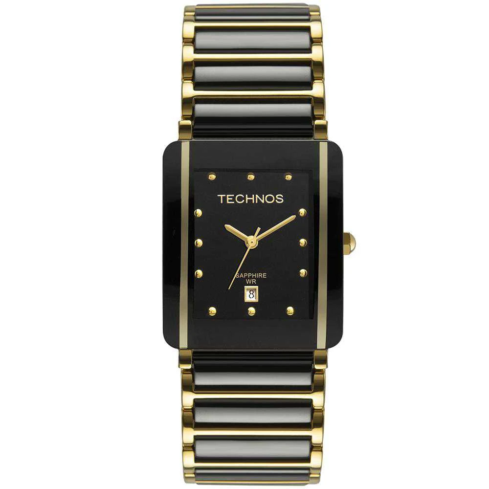 Relógio Technos Ceramic feminino preto com detalhes em dourado. Além do vidro de safira, este modelo foi desenvolvido totalmente em cerâmica, um material muito valorizado na indústria relojoeira pela vantagem de ser resistente à arranhões, livre de corrosão, leve e durável, além de conter um brilho característico inigualável.